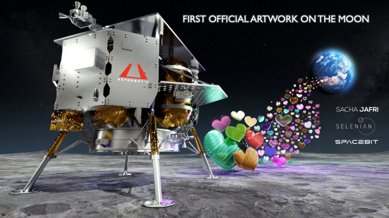 Spacebit and Astrobotic Technology Inc., NASA CLPS görevi ile Sacha Jafri'nin sanat eserini Ay'a götürecek ve yerleştirecek. Jafri tarafından tam 7 ayda tamamlanan resim, dünyanın en büyük kanvas resmi özelliğini taşıyor. Artist bu tabloyu COVID-19 döneminde eve kapandığımız karantine günlerinde tamamladı.Görev, uzayda sanatın küratörlüğünde uzmanlaşmış bir şirket olan Selenian tarafından bir araya getirildi. Selenian, uzay araştırma teknolojisi geliştiren bir şirket olan Spacebit ve Ay'a bağlı yükler için uçtan uca teslimat hizmetleri sağlayan Astrobotic Technology Inc. ile sanat eserini Ay'a koymak için iş birliği yaptı.İşte Ay'a yerleştirilecek eser: