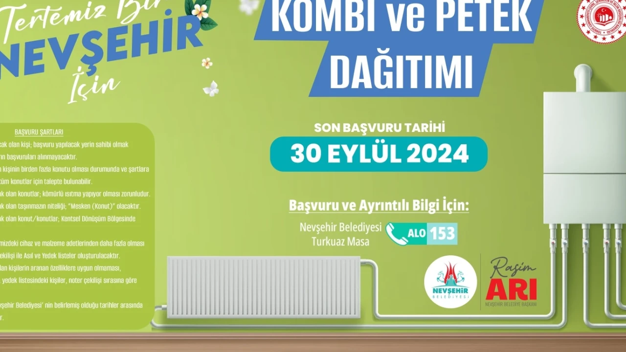 Nevşehir Belediyesi, evsel ısınmada kömür kullanımının azaltılması suretiyle hava kalitesinin iyileştirilmesi ve dar gelirli aileleri doğalgaz kullanımına teşvik etmek için doğalgaz tesisat kurulumu ve kombi desteği sağlayacak.