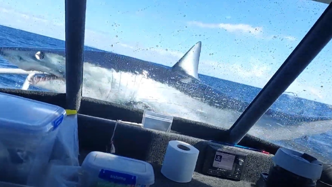 Balıkçılar şanslıydı ki, köpkebalığı teknenin kimse olmayan burun tarafına zıpladı. Sivriburun camghöz köpekbalıkları saatte 50 km hıza ulaşabilen inanılmaz hızlı köpekbalıklarıdır ve genellikle Yeni Zelanda kıyıları gibi tropik denizlerde kıyıdan uzakta bulunurlar. Ortalama boyutları 4 metreye ulaşabilir ve ağırlkları da 570 kilograma kadar çıkabilir.