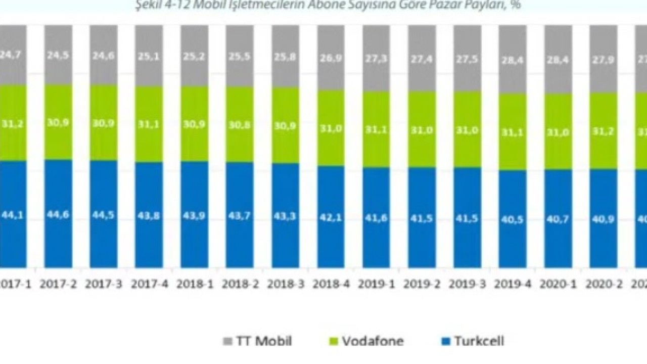 82 milyon 128 bin 104 adet mobil abone bulunuyor. BTK’nın 2020 dördüncü çeyrek verilerine göre ise mobil abone sayısı dağılımında Turkcell