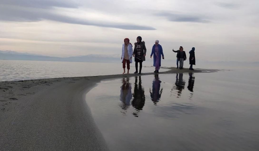Van Yüzüncü Yıl Üniversitesi'nin Van Gölü'ne olan kıyısında yeni adacıklar oluştu ve fotoğrafçılar bunu görüntülemek için bölgeye akın etti. Adacıkların sığ suyunda yapılan yürüyüş güzel manzaralar ortaya çıkarmasına rağmen, asıl konu olan su kaybını acı bir şekilde gözler önüne serdi.