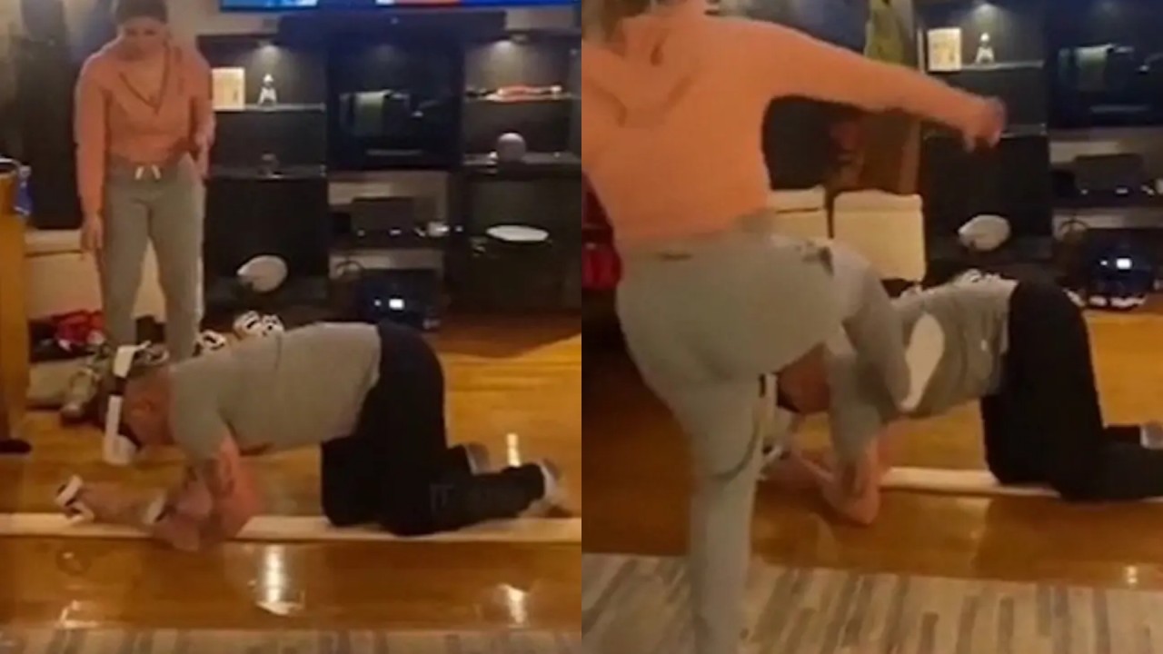 Tam bu sırada adamın eşi ona bir anda bir tekme atıyor ve kalasın üzerinden düşmesine neden oluyor. Adam, sadece video oyunu oynadığını unutmuş gibi göründüğü ve tam anlamıyla bir uçurumdan düştüğünü düşündüğü için korkuyla çığlık atıyor ve titriyor. Kulaklığı çıkardıktan sonra adam tamamen nefessiz kalıyor ve hala hayatta olduğu için tamamen rahatlamış görünüyor.